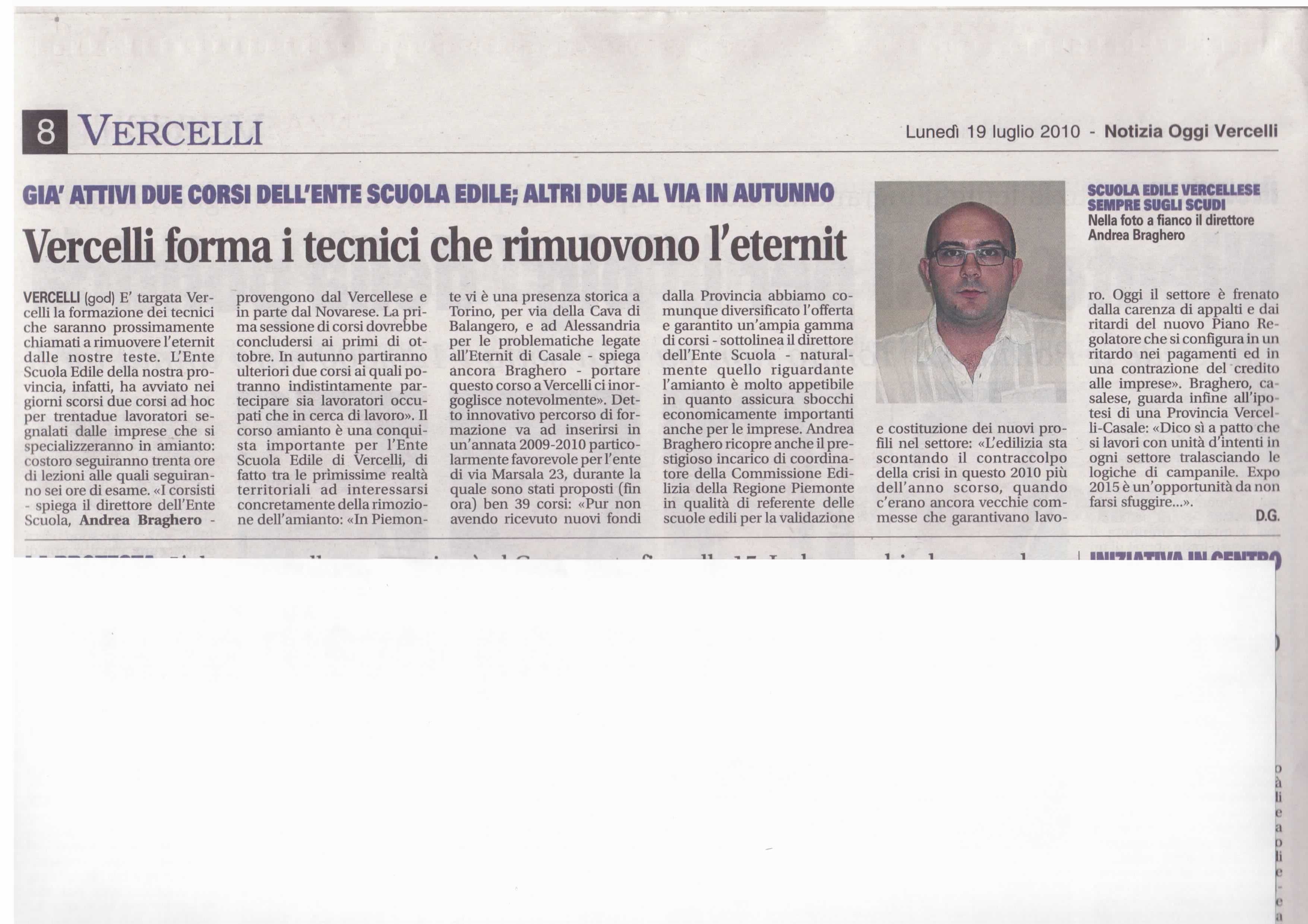 Venerdì 23 settembre 2011, partirà un corso per addetti alla rimozione, bonifica e smaltimento materiali contenenti amianto. Il corso, riconosciuto dalla Provincia di Vercelli con Cod. B205 – 2 – 0 – 2011 – 0, ha già raggiunto le 14 adesioni, pertanto sono disponibili, ad oggi, ancora 2 posti. Qualora ci si volesse iscrivere, si è pregati di farlo nel minor tempo possibile (termine ultimo mercoledì 21 settembre) compilando il modulo che troverete nella sezione correlata ai corsi (per accedervi direttamente clicca qui). Il corso ha una durata di 36 ore (30 ore più 6 ore di esame composto da una prova scritta della durata di 2 ore e un colloquio della durata complessiva di 4 ore). Si ricorda agli allievi stranieri che durante la prima lezione verranno sottoposti ad un test scritto sulla loro conoscenza della lingua italiana (scritta e orale) così come richiesto dagli Standard Formativi del sopracitato corso di formazione.