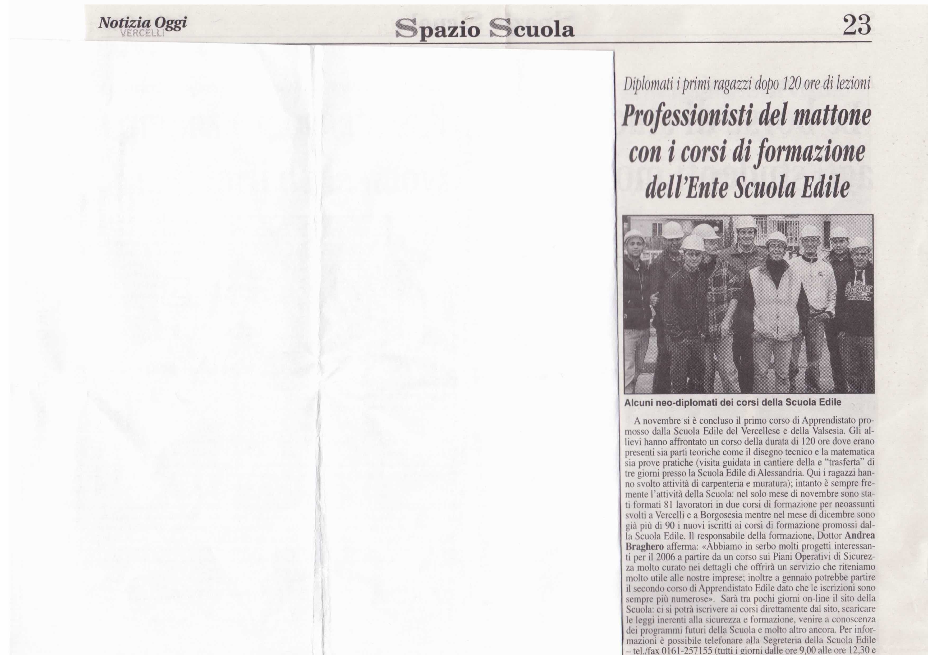 La Scuola Edile del Vercellese e della Valsesia organizzerà nel mese di gennaio 2016 un corso per addetti e preposti al Montaggio, Smontaggio e Trasformazione Ponteggi. Il corso della durata di 32 ore (16 teoria + 16 pratica) si terrà a Vercelli. Sono 7 le preiscrizioni, pertanto sono disponibili ancora 11 posti. Per coloro che volessero iscriversi è sufficiente compilare il modulo nella sezione “Moduli iscrizioni” compilarlo in ogni sua parte e inviarlo per mezzo fax (0161.257155) o per posta elettronica (info@scuolaedilevc.it) entro venerdì 15 gennaio 2016.